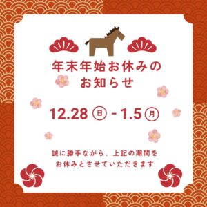 上記期間中は、資料の発送およびメールでのご質問・お問い合わせへの対応を休止させていただきます。